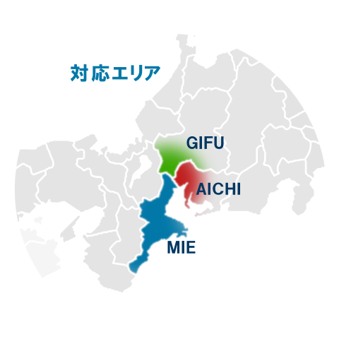 当社は四日市市を中心に三重県全域及び隣接する愛知県岐阜県の一部をご対応のエリアとさせていただきます。地域密着型の企業として、迅速かつ細かいご要望にも親身なって対応させていただくことができます。